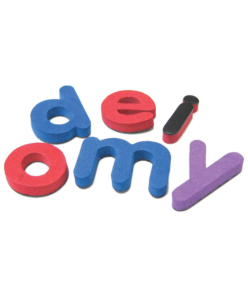 Practice alphabet-related skills with 55 lowercase letters measuring 1" to 1-1/4". 41 blue consonants, 13 red vowels, and 1 purple y. Lightweight, washable foam coupled with magnetic backing makes the letters practical for any setting. Comes in a resealable storage bag. Teaching tips are included.