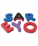 Practice alphabet-related skills with 55 uppercase letters measuring 1-1/4". 41 blue consonants, 13 red vowels, and 1 purple y. Lightweight, washable foam coupled with magnetic backing makes the letters practical for any setting. Comes in a resealable storage bag. Teaching tips are included.