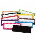 Multi-purpose labels have a write-on/wipe-off face and magnetic back. Use on dry erase boards and cabinets. 30 labels: 3 each of 10 colors. Measures 2-1/2" x 1".