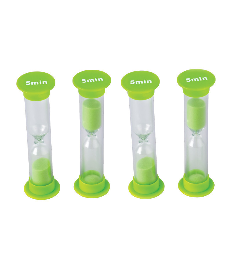 Race to see how much can be accomplished before time runs out. Great for games, timed test, and time management. Handy plastic timers with colored sand. Includes suggested activities. Each timer measures 1" x 3.5". Each pack includes 4 timers.