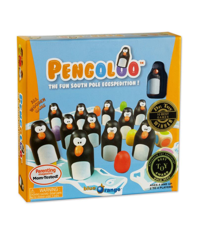 Each turn, players roll the colored dice and look under two penguins for eggs that match the colors on the face of each die. Guess correctly and keep the penguin on your iceberg. Collect six penguins to win!