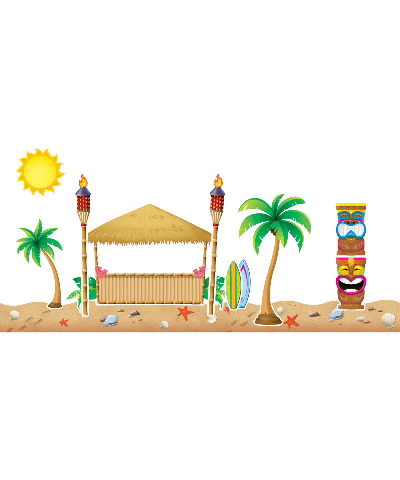 Ride the wave...to a new grade or to new heights of academic achievement. Have some fun as you display student work or classroom information. The hut measures 20 1/2" x 12 3/4". Teacher's guide and 63 pieces, including 43 surfboards.