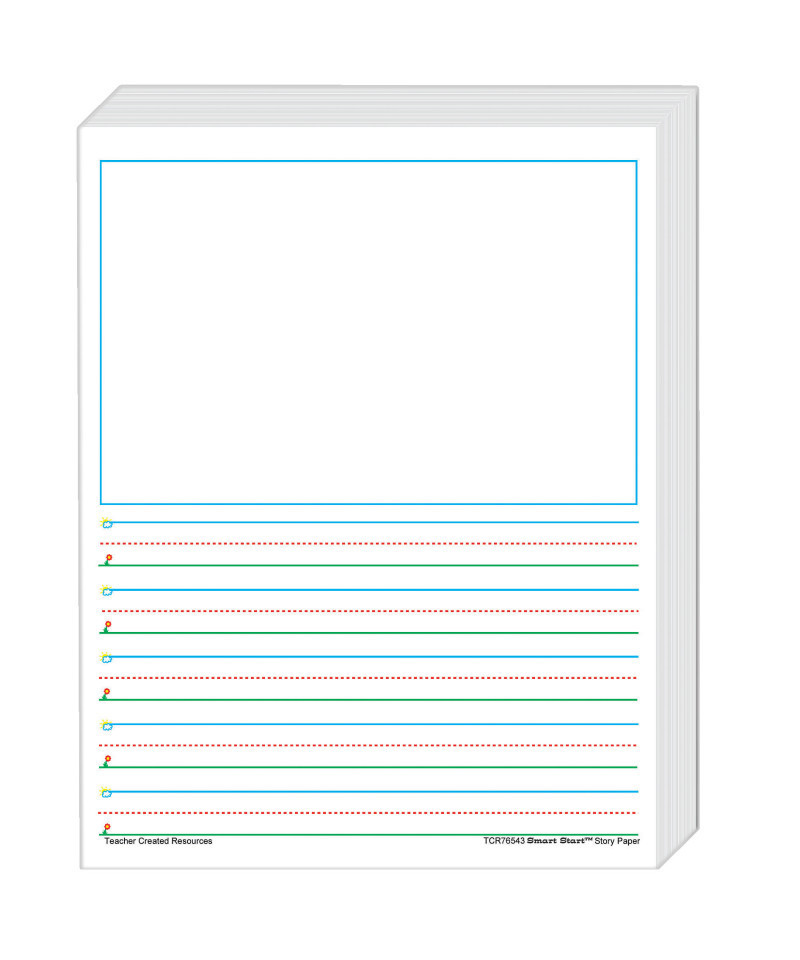 Smart Start Story Paper (8-1/2" x 11") is truly a "Smart Start" for beginning and experienced writers. Bold graphics in blue, green, and red promote the feeling of success as children simply "Start at the Sky and pull down to the Ground" to form letters correctly. 1-2 Story Paper has space for a picture and lines with 5/8" spacing. Package includes 360 sheets.