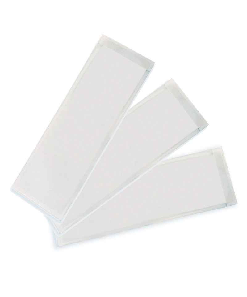 These pockets seal at end and remove easily from desk. Self-adhesive and heavy duty. Open pocket, slip in nameplate, remove backing, position pocket and stick! Each pocket measures 3.25" tall by 10.5" wide. Each pack includes 25 pockets.