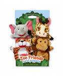 - Four soft hand-puppets in a wild-animal theme