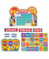 Eureka Bulletin Board Sets are sure to bring any room to life. With the brightest colors, individual designs and variety of styles, the choices are endless. Everything needed to create a giant classroom calendar, with month headings, dates and additional squares containing illustrations that highlight special days. Best of all, the whole set features the Mickey Mouse Clubhouse® characters! (partial set shown). 110 Piece Set Includes: 1 Giant Calendar (34" x 24"), 12 Month Headings, 33 Dates, 52 Special Day Markers, 4 Seasonal Markers, 7 Days of the Week, and 1 Days of the Week Indicator.