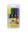 Bistro Chalk Markers are the perfect every day chalk marker. These chalk markers work on chalkboards, dry erase boards, light boards, windows, windshields, and other non-porous surfaces so you can write or create art virtually anywhere. These markers come in 19 colors and are opaque, water-based, and pigmented. Clean up is super easy, they are erasable with a damp cloth. Each pack includes 4 markers with a 6 mm point tip: brown, green, yellow, and violet.