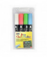 Bistro Chalk Markers are the perfect every day chalk marker. These chalk markers work on chalkboards, dry erase boards, light boards, windows, windshields, and other non-porous surfaces so you can write or create art virtually anywhere. These markers come in assorted colors and are opaque, water-based, and pigmented. Clean up is super easy, they are erasable with a damp cloth. Each pack includes 4 markers with a 6 mm point tip: white, fluorescent red, fluorescent blue, and fluorescent green.