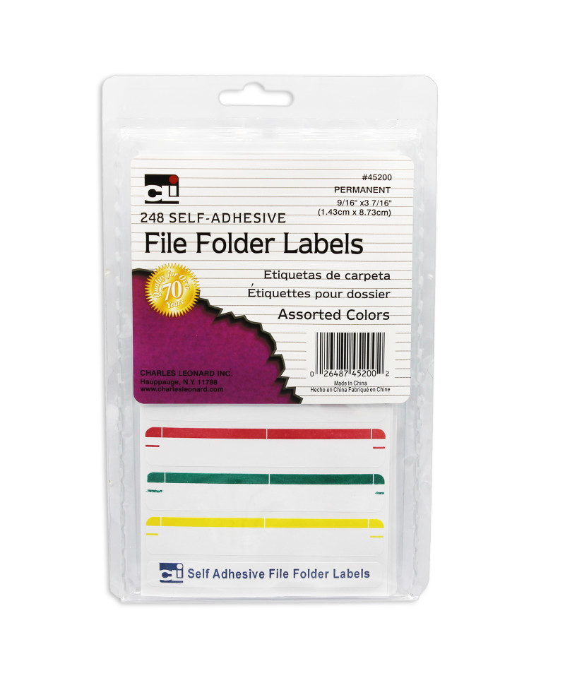 Charles Leonard File Folder Labels, Self-Adhesive, 0.56 x 3.43 Inches, Assorted, 248-Count