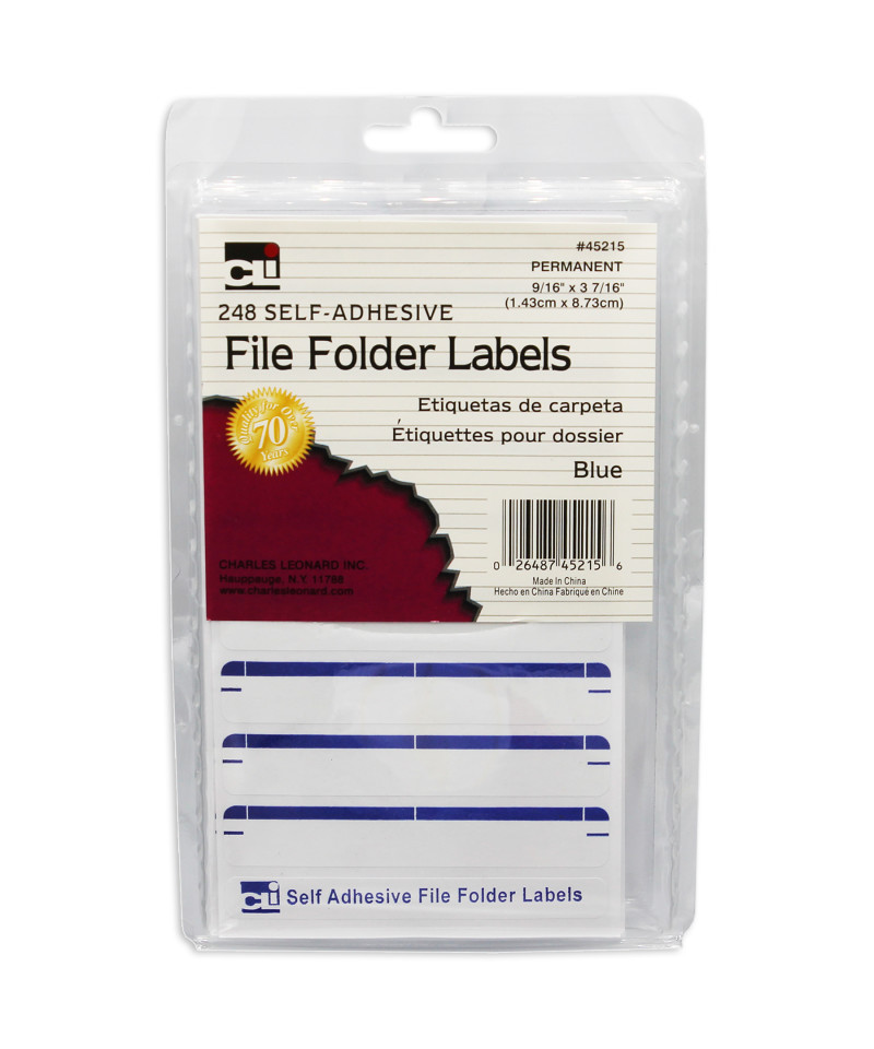 Charles Leonard File Folder Labels, Self-Adhesive, 0.56 x 3.43 Inches, Blue, 248-Count