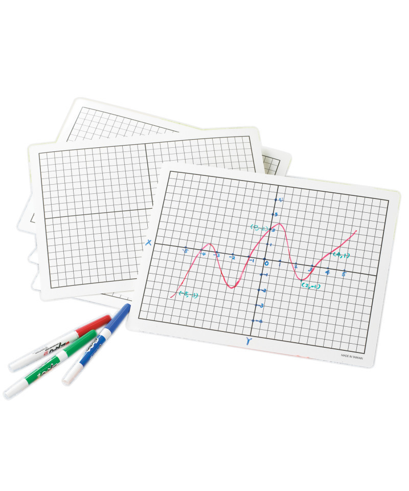 - X and Y axes on centimeter grid lines are printed on tough flexible plastic for use with dry-erase markers.