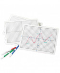 X and Y axes on centimeter grid lines are printed on tough flexible plastic for use with dry-erase markers. Mats measure 9" x 12". Package of 10.
