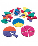 Eight color-coded circles in fractions of 1/2, 1/3, 1/4, 1/5, 1/6, 1/8, 1/10, 1/12 plus one whole. Made of dense foam, these circles are easy to handle and stay put nicely. 51 pieces in bag, 1/2 cm thick. Set has a 3.5" diameter.