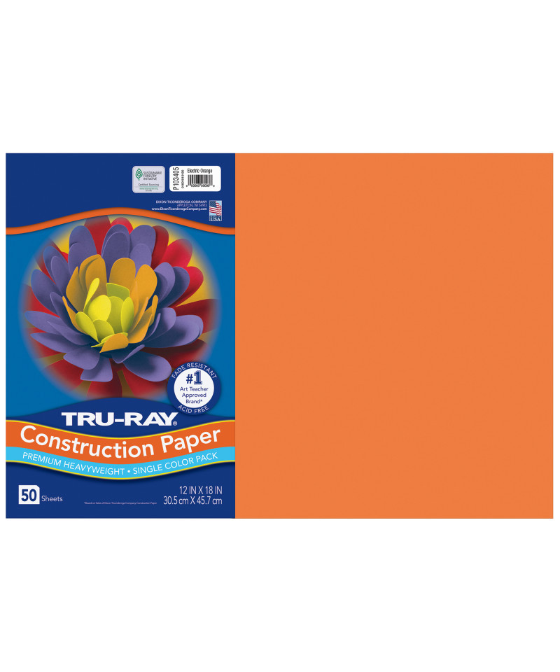 Heavyweight 100% vat-dyed sulphite with longer, stronger fibers. Tru-Ray® Construction Paper is tough enough to take scoring, folding and curling without cracking and tearing. Its superior fade-resistance keeps projects brighter and fresher longer. Available in 28 stay bright colors. Acid free for less fade. 50% recycled fiber content and recyclable. Measures 12" x 18". Each pack includes 50 sheets.