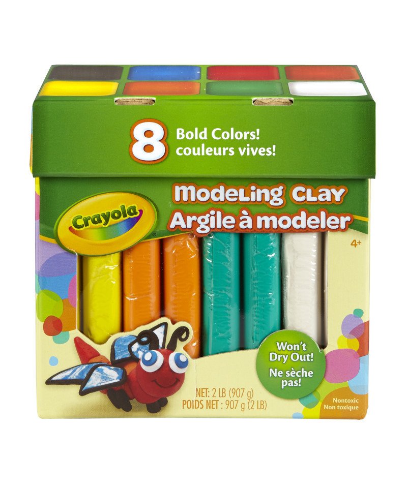 Tactile, easy to work with, and soft to the touch, Crayola Modeling Clay is designed especially for kids' hands. The clay makes an ideal first sculpting compound and can help children develop an early sense of form and finesse. These vibrant colors are great for sculpting play houses, figures, flowers, and more. Completely nontoxic, the clay is safe and suitable for young children ages 36 months and up. The clay is also designed to scrape easily off most surfaces, making cleanup a breeze. Each pack includes 2 lbs. in 8 colors.