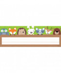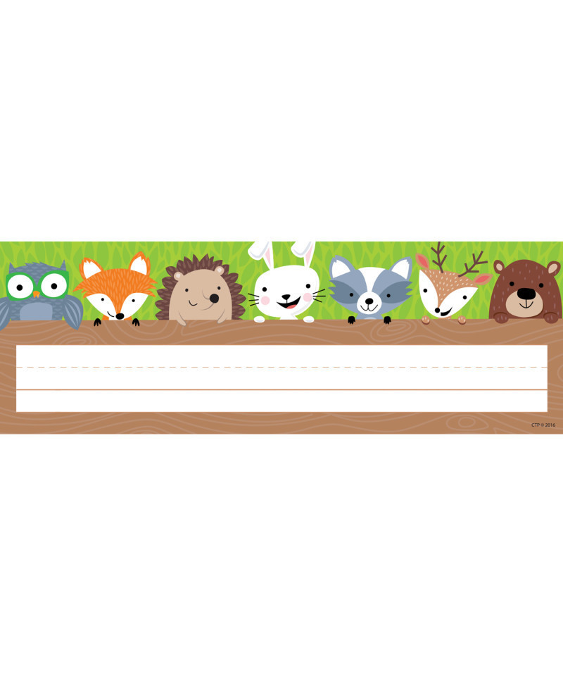 This Woodland Friends name plate features cute woodland creatures (owl, fox, hedgehog, rabbit, raccoon, deer, and bear) peeking out from behind a log. Name plates can be used to personalize student desks, cubbies, seats at the table, take-home bags, classroom cabinets, folders and more! Name plates measure 9.5" x 3.25". Each pack includes 36 name plates.
