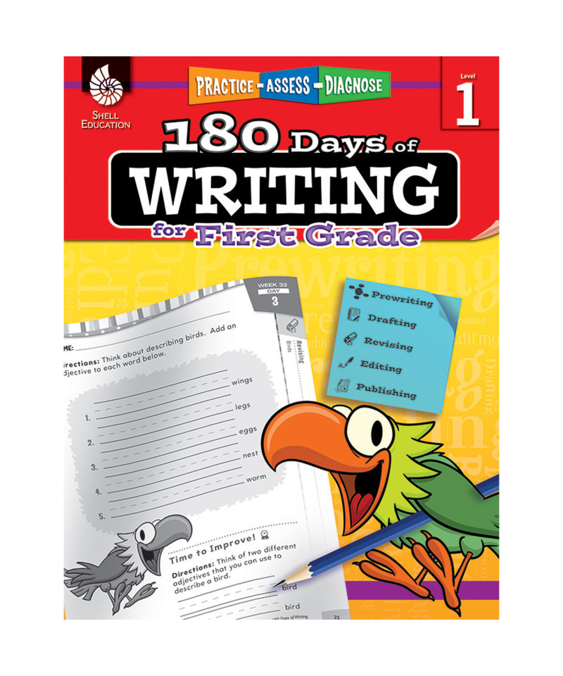 180 Days of Writing is an easy-to-use resource that provides first grade students with daily practice activities to build writing and grammar skills. Students interact with mentor texts and then apply their learning by writing opinion/argument, informative/explanatory, and narrative pieces. For use at home or at school, this workbook features: