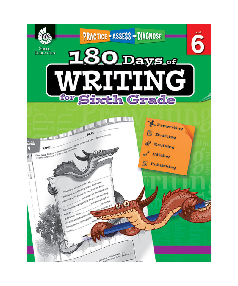 180 Days of Writing is an easy-to-use resource that provides teachers and parents with daily practice activities for sixth-grade students to build writing and grammar skills. Students interact with mentor texts and then apply their learning by writing opinion/argument, informative/explanatory, and narrative pieces. This excellent classroom resource features: