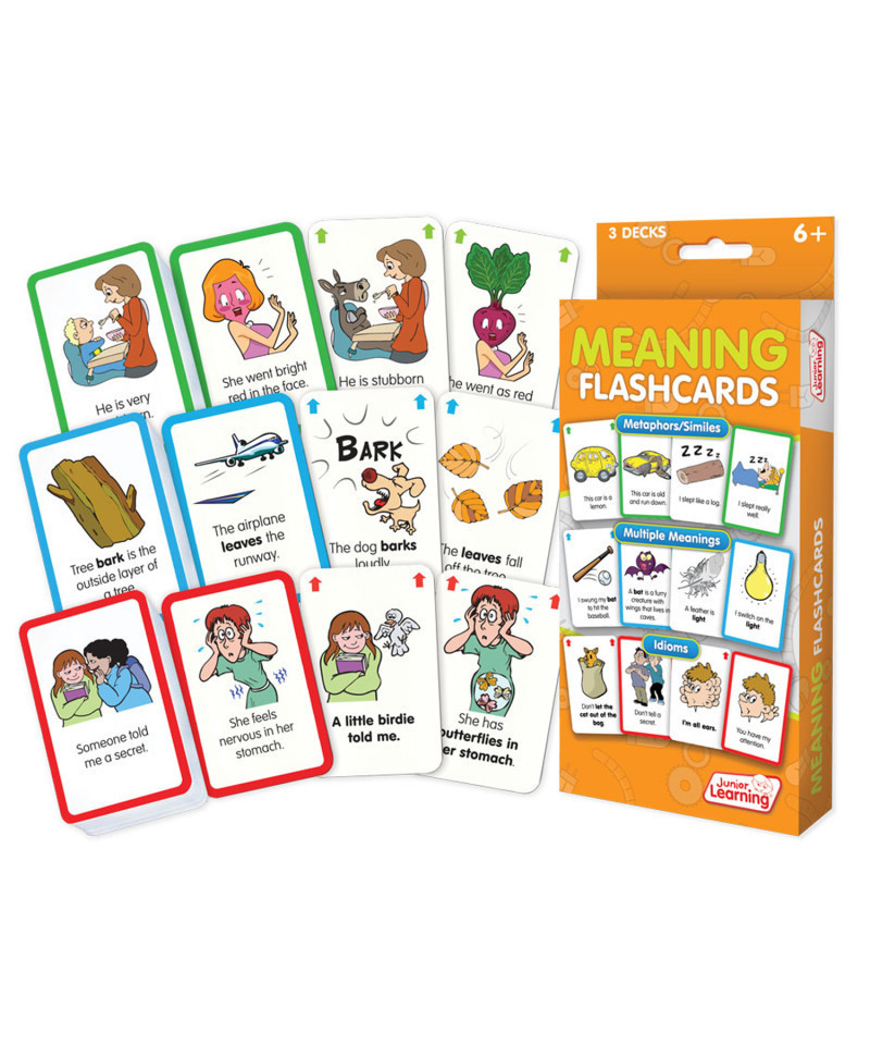 This value pack of flashcards includes 3 sets of 54 cards for teaching meaning. Covers metaphors/similes, multiple meanings and idioms. Includes common nouns to support language acquisition. Teaches fast, automatic recall. A perfect activity for independent or guided learning. Includes 3 sets of flashcards, 162 cards total. Ages 6+. Cards also work with Flashbot, sold separately.