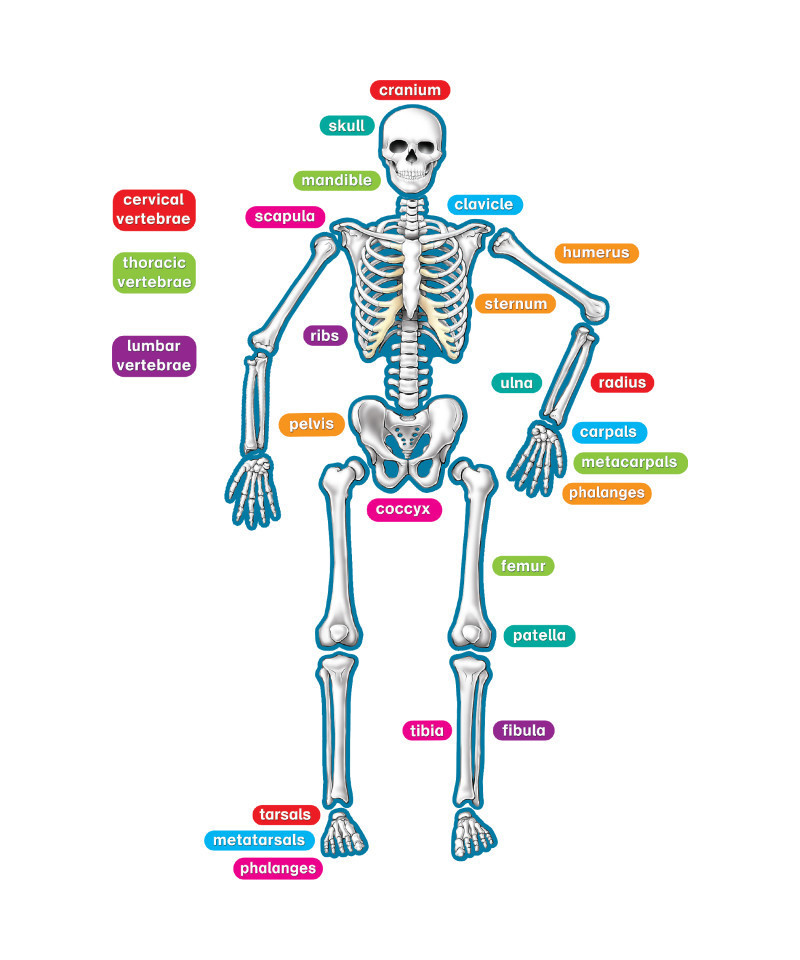 Decorate and educate with these durable, reusable magnetic accents. Get your students excited about learning with these teaching magnets. Kids will learn the names of bones while they build and decorate their very own human skeleton. Each set includes a total of 40 pieces: 15 bones and 25 labels. The skeleton measures approximately 33" tall when assembled.