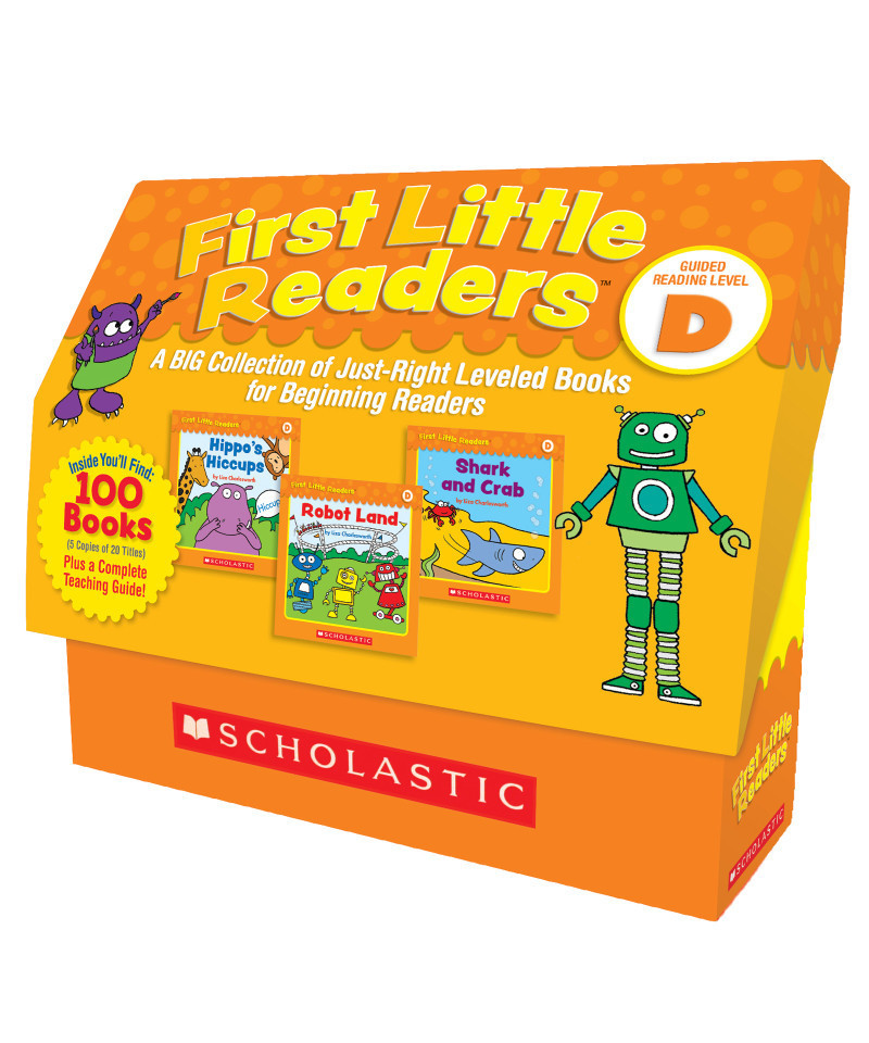 Jumpstart your early reading program with this big collection of motivating storybooks correlated with Guided Reading Level D. Inside this sturdy storage box, you'll find 100 books (5 copies of 20 titles) plus a 32-page teaching guide packed with lessons, tips, and reproducibles. Each book features simple text, decodable words, strong picture cues, and two to four lines of text per page to support readers with just a little experience under their belts.