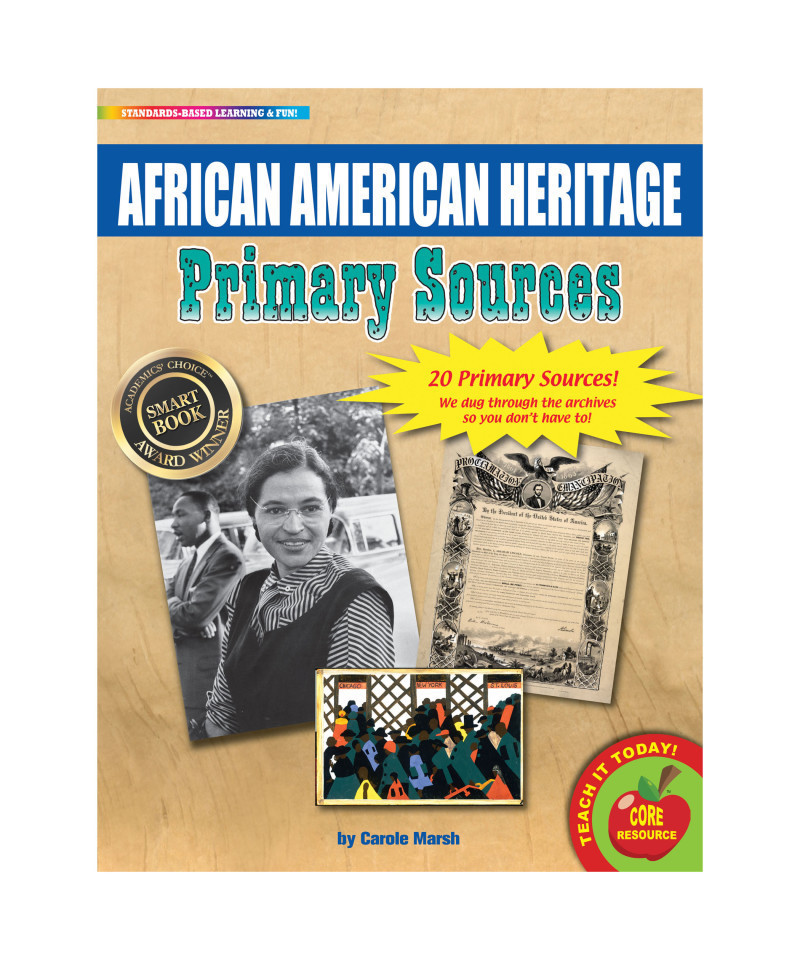 The Primary Sources series is the winner of the 2015 Academics' Choice Awards for the 2015 Smart Book Award in recognition of mind-building excellence. The African American Heritage Primary Sources is a pack of 20 primary source documents that are relevant to history of the African American Heritage. The African American Heritage Primary Sources includes historical documents, maps, photographs, political cartoons, lithographs, diagrams, letters in a mix of color and black-and-white, and sepia finishes. Each primary resource is printed on sturdy 8.5" X 11" cardstock.