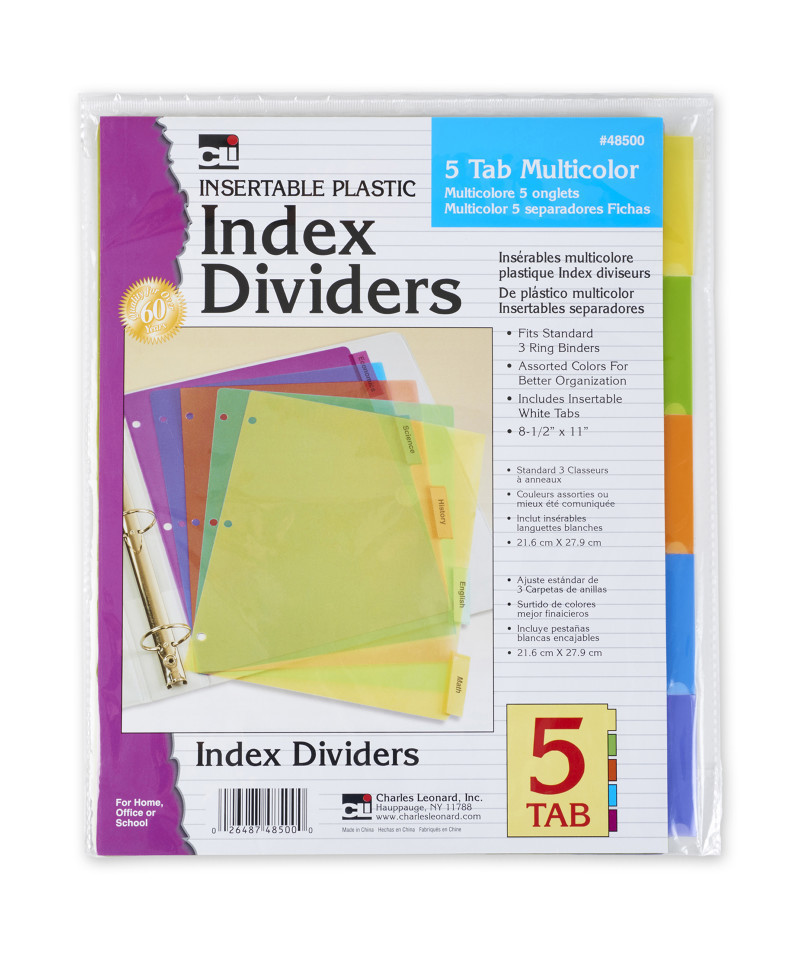 Fits most standard 3 ring binders, multi-color customizable tabs included. 5 tab positions for easy organizing.