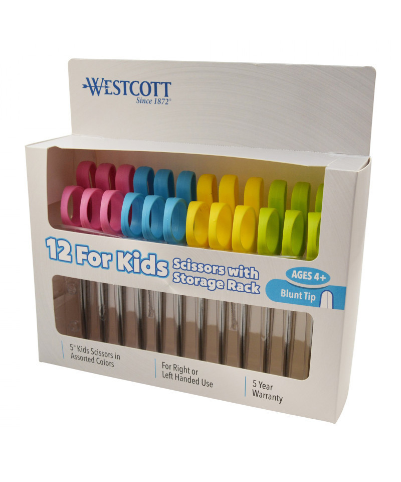 Westcott has provided the world with innovative and well designed products for over a century... at affordable prices, without sacrificing quality. Westcott is dedicated to supporting education and inspiring creative activities in the classroom and at home. Products are specifically designed for growing students, created to be fun and functional with superior quality and exceptional value. Especially designed for a child's hand. Durable stainless steel safety blades. Lightweight handles. Blunt scissors are most suitable for ages 4+. Easily cut through paper, string and other craft materials. Manufacturer's limited five year warranty. Each pack includes 12 scissors in 4 assorted bright colors: blue, green, pink and yellow.