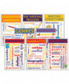 These eight 11" x 17" posters show key terms and colorful images related to these important topics: narrative writing, persuasive writing, expository writing, descriptive writing, genres, writing structures, figurative language, and the writing process.