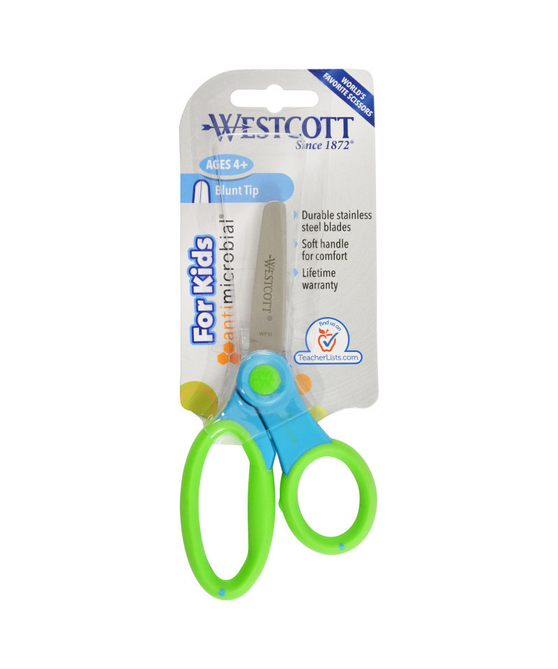 Westcott® offers a wide range of anti-microbial products that contain an antimicrobial agent to help inhibit the growth of bacterial stains and odors. Westcott® is dedicated to supporting education and inspiring creative activities in the classroom and at home. Products are specifically designed for growing students, created to be fun and functional with superior quality and exceptional value. The Westcott 5" Blunt Scissors with Anti-Microbial Protection features soft handle for added comfort and durable stainless steel blades. Perfect for cutting projects, in the classroom or at home. For ages 4 and up. Assorted colors (color can't be specified when ordered).