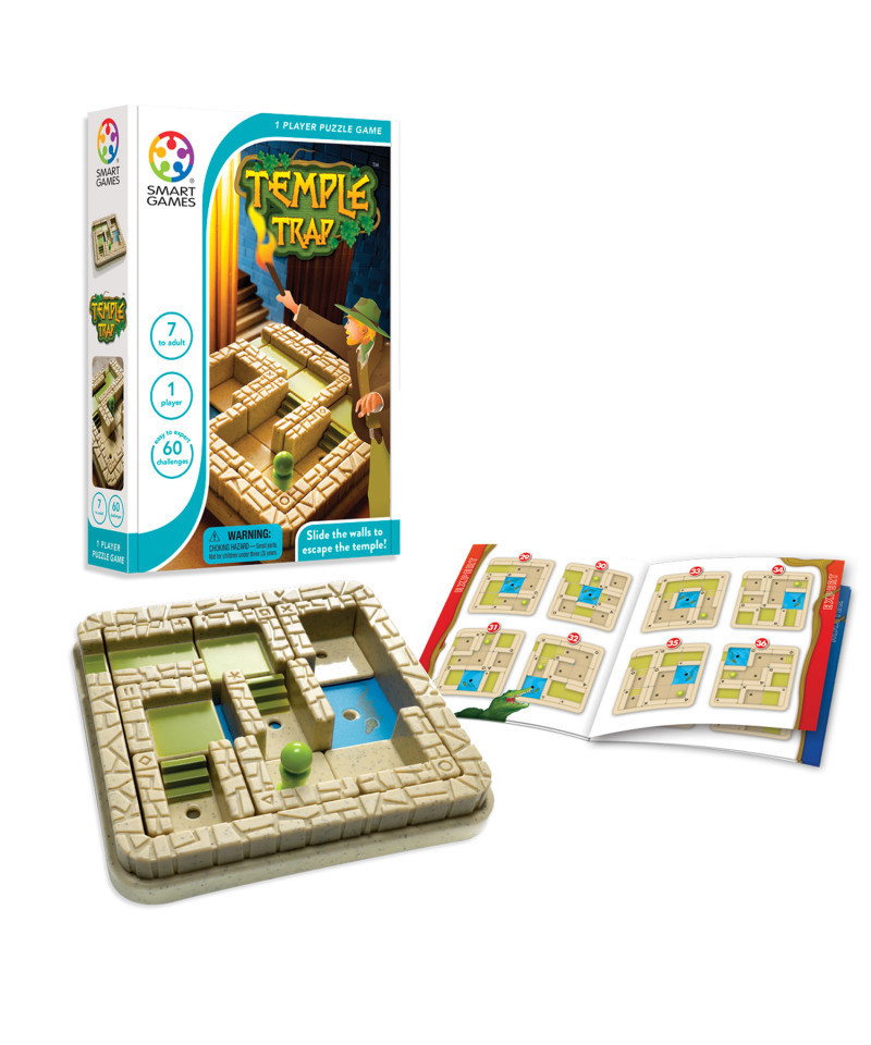From SmartGames, the worldwide leader in single player puzzle games, comes Temple Trap. Avoid the alligators and other dangerous traps as you navigate your adventurer out of this shifting temple, flexing your logic muscles in this unique, beautifully designed 3-D puzzle. With puzzles ranging from simple challenges for beginning adventures to complex puzzles that will test advanced treasure hunters, Temple Trap is a fun way to develop logical thinking skills and spatial reasoning abilities.