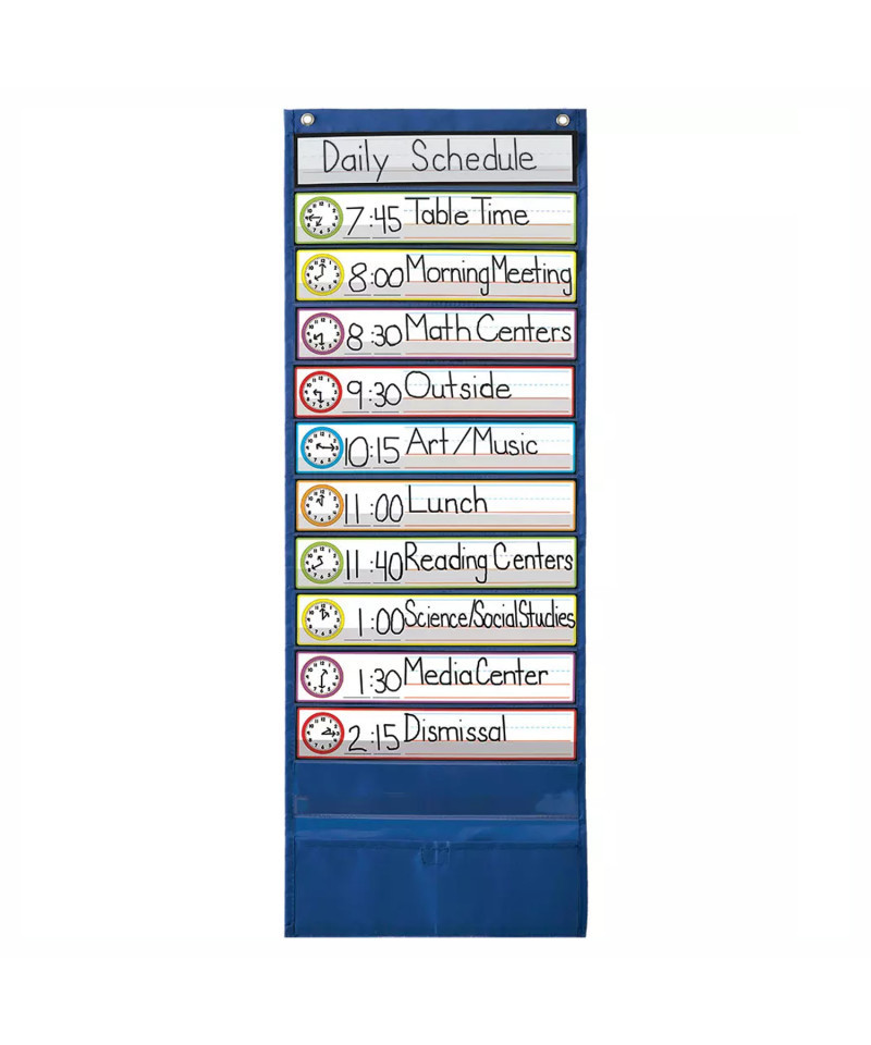 The Deluxe Scheduling Pocket Chart is the easiest way to illustrate your classroom's daily schedule. You can also use it to reinforce time-telling lessons.