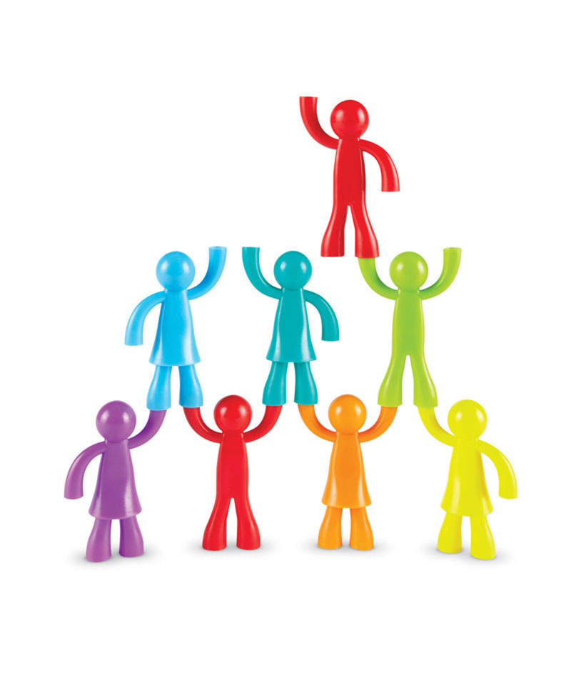 Children learn colors and sorting while developing fine motor skills with this fun building and stacking set. Thirty-two figures come in four different colors. Hands connect to feet for easy stacking, and multiple poses allow for building vertically. Each piece measures 3"H.