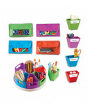 - Ideal for use in the classroom or for Home Schooling, this colorful set comes with a circular tray that includes plenty of containers for markers, pencils and more