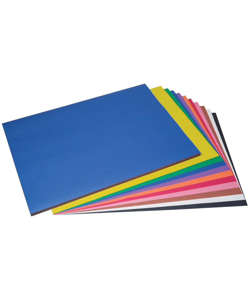 Prang® Medium Weight Groundwood Construction Paper provides the best value in school grade construction paper. It is the perfect solution for school projects and other arts and crafts. It has bright and consistent colors, is slightly textured and cuts and folds evenly without cracking. This 10 color assortment includes Scarlet, Black, Yellow-Orange, Brown, Pink, Violet, Blue, Holiday Green, White, and Yellow. Recyclable. Measures 18" x 24". Each pack includes 100 sheets.