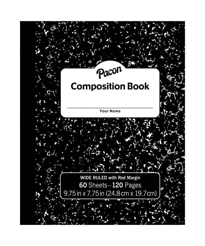 Durable, soft cover, one-subject composition books are great for note taking and journaling. 3/8" wide ruled with red margin. Measures 9.75" x 7.75". Includes 60 sheets.
