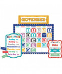 This stylish calendar display comes with easy-to-read number pieces, colorful monthly headers, and additional pieces for holidays and special occasions as well as yesterday, today, and tomorrow. Blank calendar measures 24 x 18. 84 pieces total.