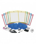 - Class pack has everything you need, 10 each of durable dry erase pockets, markers and multi-purpose cloths