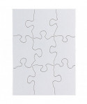These blank puzzles can be used for artwork, leisure time activities, group projects, visual aids. The puzzles can be filled in with drawings or messages done with crayons, pens, watercolors, felt-tip markers, etc., or rubber stamped. These puzzles are made of heavy weight cardboard, glossy white on front and matte white on reverse side. Puzzles can be sealed with shellac or Mod-podge and displayed, or broken up and mailed to be assembled by the recipient. Puzzles measure 4" x 5-1/2". Each puzzle includes 9 pieces. Includes 24 puzzles.