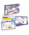 50 Ten Frame Activities is a set of 50 double-sided activity cards for teaching math skills with ten frames. Topics include: numbers, number bonds, addition, subtraction, counting, grouping, equal sharing, skip counting, bridging, multiplication and division. The front side provides teaching objectives, resources used and procedure. The other side provides visual examples. Math manipulatives used effectively throughout and presented in clear photography. Contains 50 double-sided activity cards and a contents card that can act as a check off list.