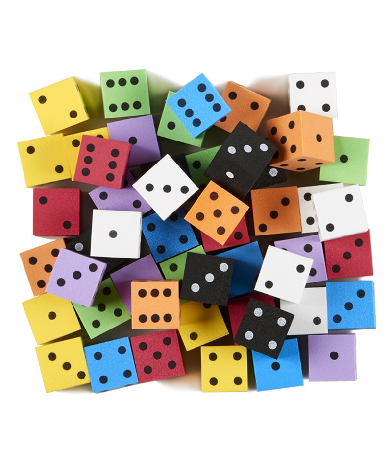 Ideal for games and practicing math skills, these soft foam dice are much quieter than regular dice. There are hundreds of counting, sorting and math applications! Includes 50 assorted color, 1", spot foam dice.