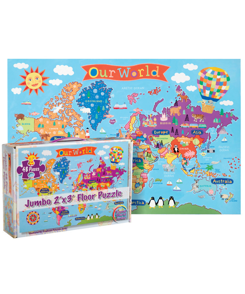 - Any child will love to build this 24x36 floor puzzle as they learn about our World