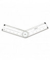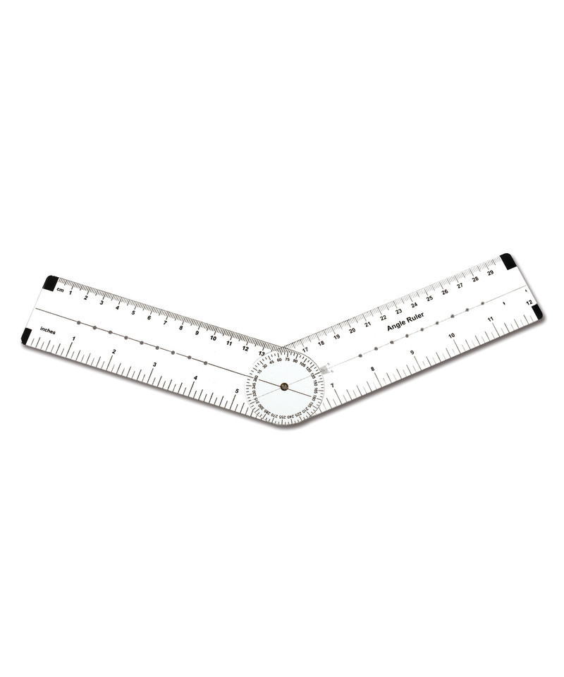 Perfect for measuring and constructing all types of angles, along with degrees and lengths of sides, this adjustable transparent ruler is marked in inches and centimeters and has a 0-360 degree scale.