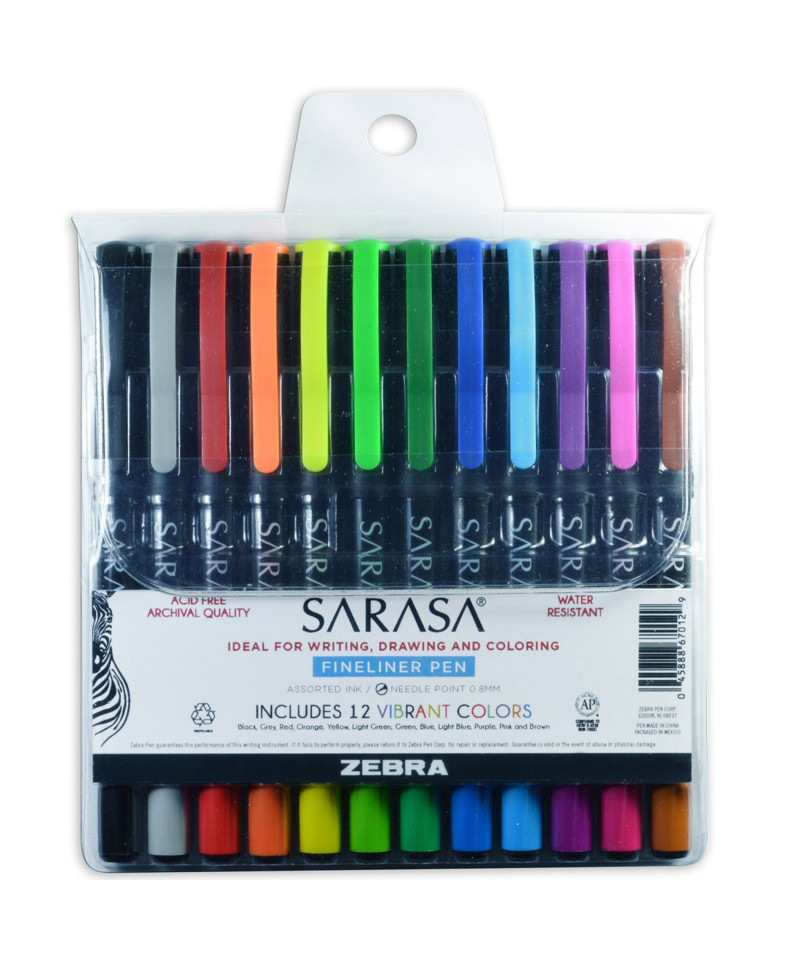 The Sarasa Fineliner defines new fine ink performance for a unique writing and drawing experience. The need point tip allows for easy ink flow with very little pressure needed, resulting in a smooth ink laydown. Includes a bright color palette with long lasting color vibrancy. Perfect for everyday writing, drawing, and coloring