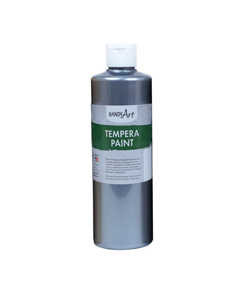 Metallic Tempera Paint offers excellent opacity and coverage and adds a lustrous gleam on art, craft and school projects! These creamy temperas can be used on surfaces such as paper, poster board, cardboard, wood and papier-mache. Paint dries to a matte finish and won't chip, flake or crack when dry. Paint is non-toxic and water based and cleans up easily with soap and water. Made in the USA. Certified AP Non-Toxic.