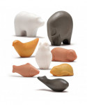 Ideal for sensory play, these beautifully sculpted animals will charm your youngest learners. The set consists of eight tactile figures: a bear, an owl, a bird, a whale, a fish, an elephant, a mouse and a rabbit (1—3'' high). The animals can be sorted and matched by different criteria, including color, habitat and characteristics, promoting language and discussion. Each piece is crafted from our unique stone mix and can be used outside. Why not build habitats for the animals: a nest for the bird, a river for the fish, an icy ocean for the bear.