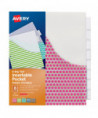 Big Tab Plastic Insertable Dividers with PocketsDurable plastic allows for frequent reference. Handy plastic pocket on every divider for extra storage. Each divider pocket features a different color and design. The clear tabs are bigger, providing 50% more writing space than standard tabs. Design allows for easy access to insert and remove tabs. Handwrite, or print the inserts using your laser or inkjet printer. Easy to customize with free templates and designs available on Avery Design & Print Online (avery.com/print).