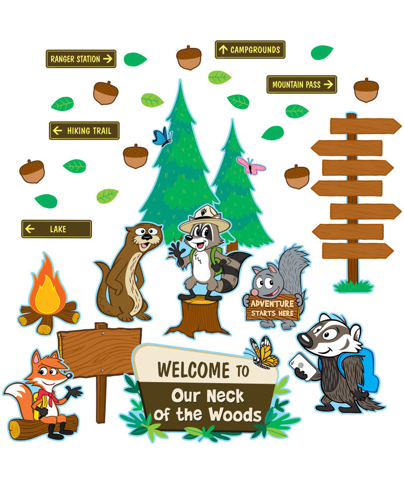 Ranger Rick and his friends are ready to welcome students and guests to your class with this charming bulletin board display. Use the blank signs as headers for centers, grouping activities, or job charts. Use the leaves and acorns to write students' names or to create classroom labels. Largest tree measures about 14" x 23-1/2". Includes a teacher's guide and 71 total pieces.