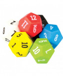 Learn about place value, math operations, and probability. Soft plastic dice are quiet and durable. Each pack includes 6 dice in 6 colors featuring numbers 1-12. Measures 1" x 1-1/2".