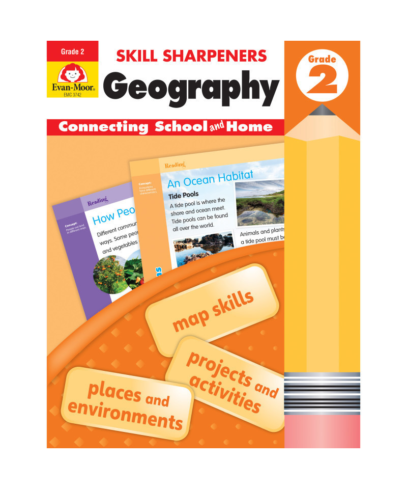 Skills Sharpeners: Geography engages your child in exploring the world while learning important map skills and geography concepts. The cross-curricular activities integrate the most current geography standards. Each geography topic includes nonfiction reading selections, comprehension questions, vocabulary practice, writing prompts, and authentic activities that bring the concepts to life. These activities invite your child to be creative while using higher-order thinking skills.